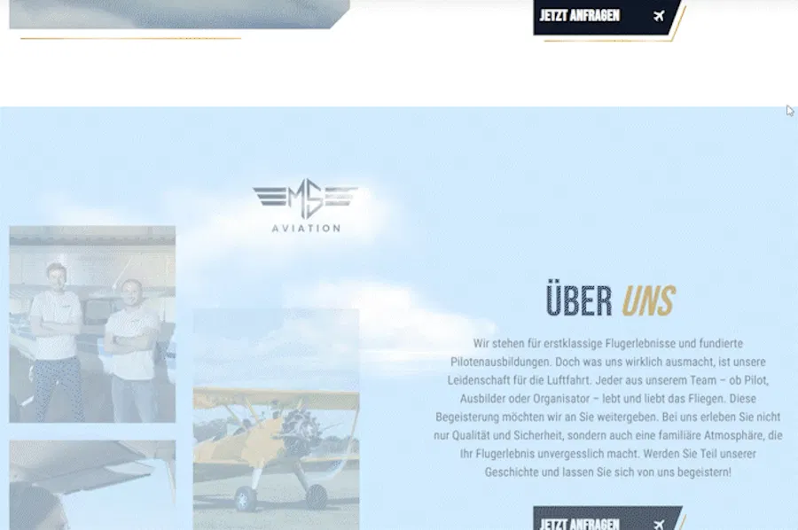 MS Aviation ist ein junges Luftfahrtunternehmen, das individuelle Flugerlebnisse und fundierte Pilotenausbildungen anbietet. Mit einem erfahrenen Team, persönlichem Anspruch und einer großen Portion Begeisterung bringt MS Aviation frischen Wind in die Branche – und ihre neue Website zeigt genau das: professionell, nahbar und mit klarer Flughöhe.
