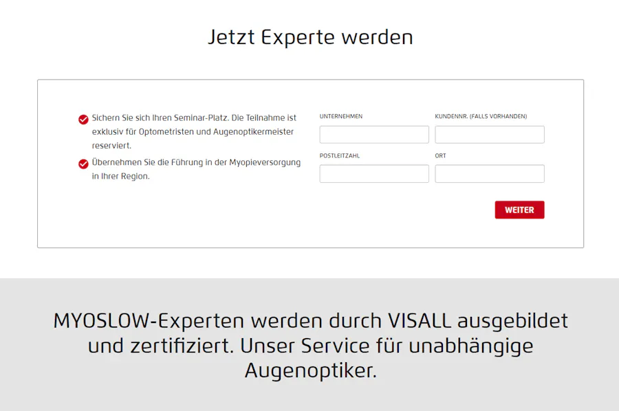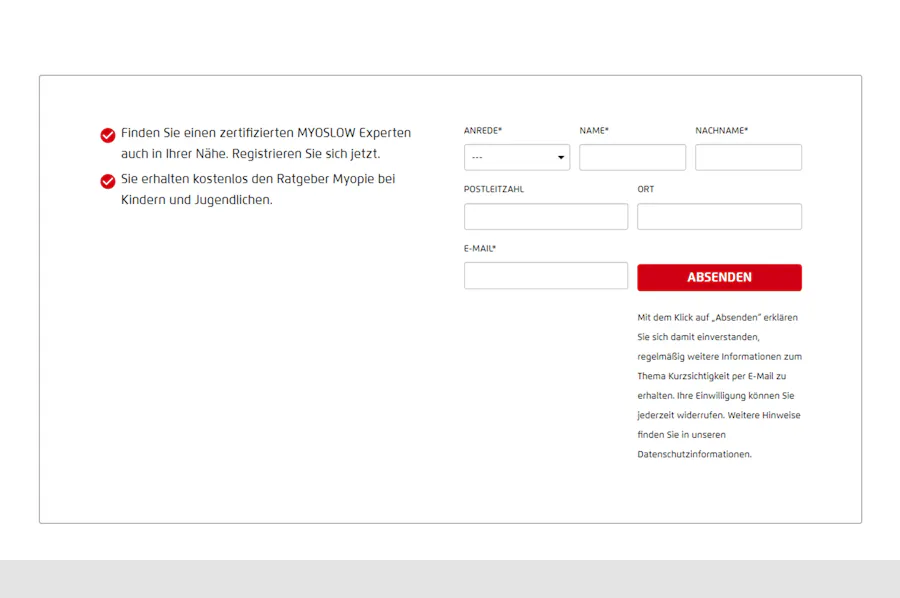 Damit sowohl Endkunden als auch Optiker Kurzsichtigkeit so schnell wie möglich entgegenwirken können, enthält die neue Website für jede Zielgruppe ein individuelles Kontaktformular bereit.